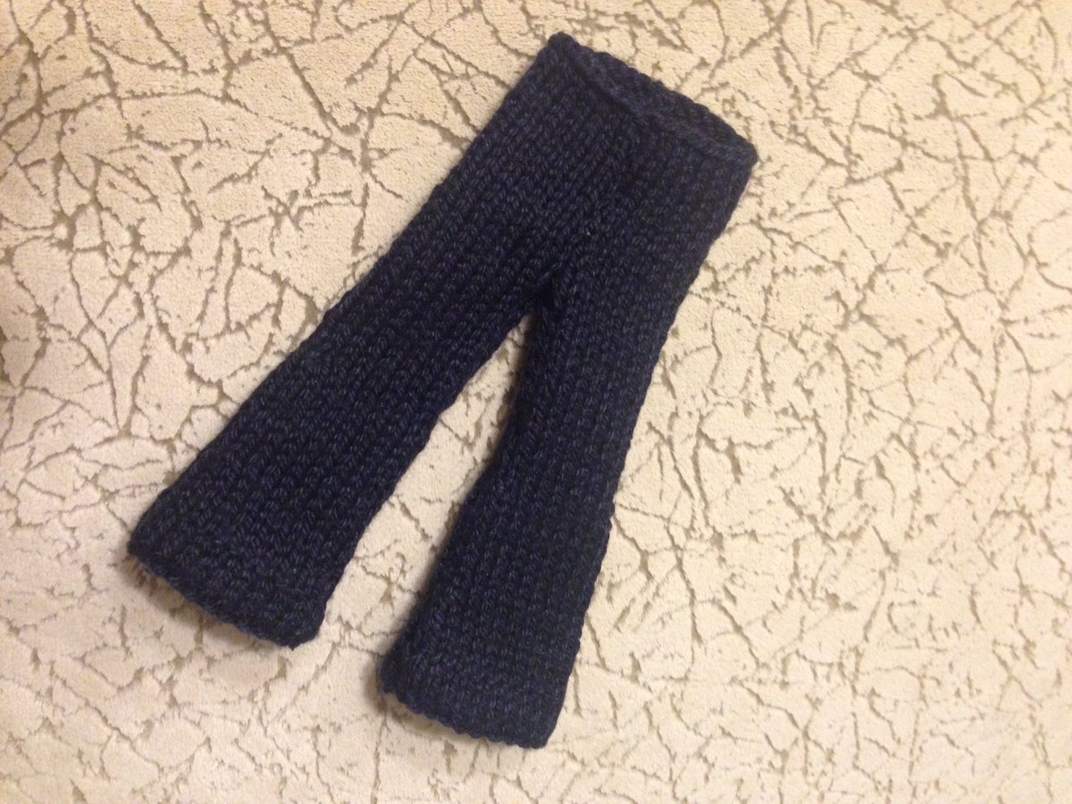 Первые штаны получились отлично (см. фото ниже) и сидят что надо, но я вязала из более толстых ниток, поэтому они получились грубоваты. Спиц-то нужных не было, а вязать толстыми швейными иглами - я попробовала, мне не понравилось :).