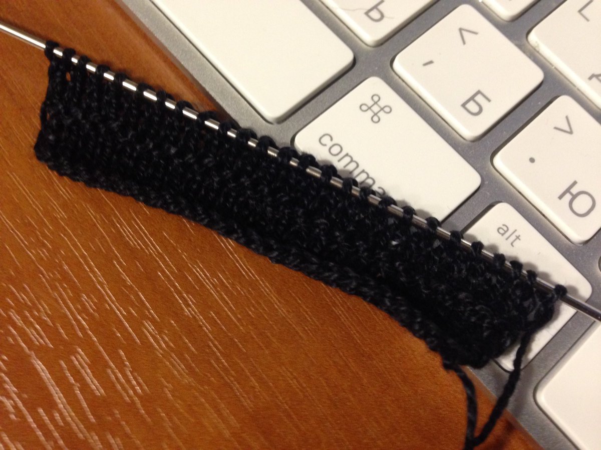 Тут толком ничего не видно, но это я вяжу вторые штаны персонажу новыми спицами Addi диаметром 1,25 мм.